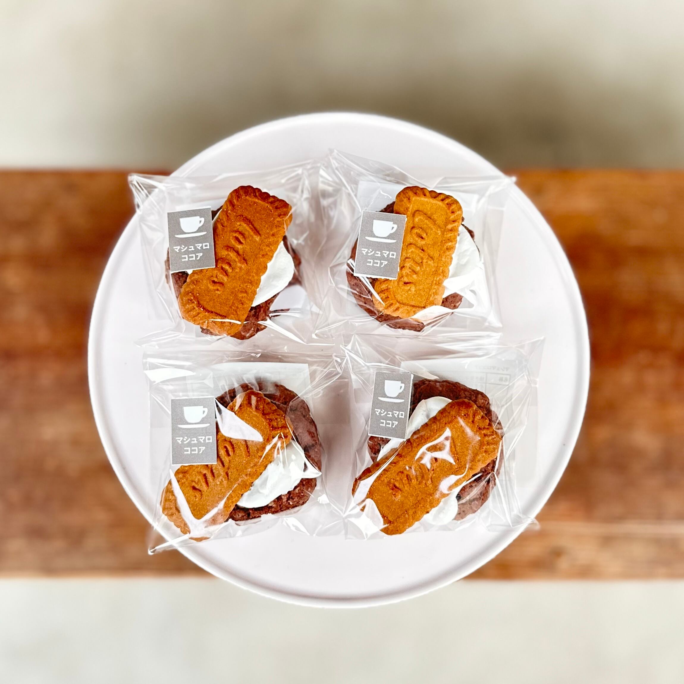小麦粉(国内製造)、きび砂糖、米油、豆乳(大豆を含む)、ビスケット(小麦粉、砂糖、植物油脂、シュガーシロップ、大豆粉、食塩、シナモン)マシュマロ(水あめ、砂糖、ゼラチン、コーンスターチ、大豆たん白)ココアパウダー、藻塩(大田市製造) / ベーキングパウダー、香料、膨張剤